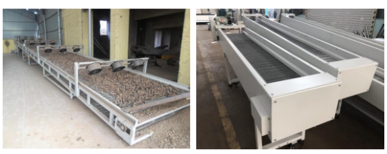 金屬網(wǎng)帶輸送機(jī)系金屬網(wǎng)帶輸送機(jī)的一種,采用金屬絲編制的網(wǎng)帶為載體,兩側(cè)加裝鏈條中間用穿銷(xiāo)連接,采用鏈輪傳動(dòng)鏈條從而使網(wǎng)帶沿鏈條傳送方向而運(yùn)動(dòng);也可以直接用特制的包膠輥筒來(lái)直接帶動(dòng)網(wǎng)帶動(dòng)作,前者一般適用于物料重量較重且長(zhǎng)度較長(zhǎng)的輸送形式,用于冷卻、吹干等行業(yè)要求的輸送,故而網(wǎng)帶密度較稀,后者一般采用較為密集的網(wǎng)帶,適用于物料較小輸送距離較短又或特殊物體的輸送,例如帶強(qiáng)磁性物料的輸送。重型網(wǎng)帶輸送機(jī)一般長(zhǎng)度不超過(guò)15米,寬度不超過(guò)2米;輕型不銹鋼網(wǎng)帶輸送機(jī)長(zhǎng)度一般不超過(guò)10米。