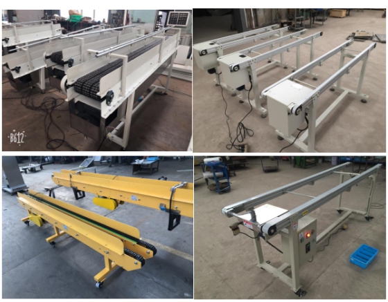 鏈條輸送機(jī)是在承載鏈條上,可以直接用鏈條作為輸送載體或者每節(jié)鏈條之間再加上一較高的承載滾子附件來承載貨物。而鏈條是以滾子來與軌道滾動(dòng)滑行。由于鏈條上的滾子與軌道是以滾動(dòng)接觸,摩擦阻力小,動(dòng)力損耗低且可承載較重的荷重。其荷重能力與支架強(qiáng)度、鏈條大小及滾子尺寸、材質(zhì)均有關(guān)系,鏈條一般我們采用精密大輥?zhàn)渔湕l,節(jié)距由19.05\25.4\38.1\50.8\63.5等,載重1-10噸不等,一般鏈條輸送機(jī)單條線體長度不超過10米。